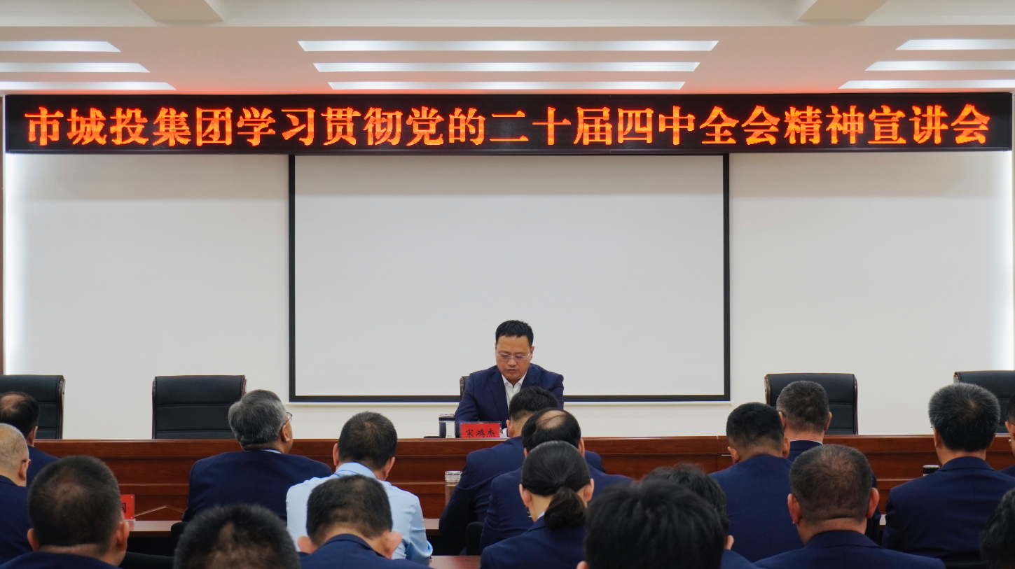 11月28日,市城投集團召開學習貫徹黨的二十屆四中全會精神宣講會,集團黨委書記、董事長宋鴻杰主持會議并作專題宣講報告,集團全體干部職工參加會議。